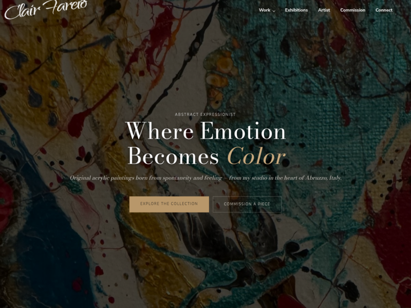 I collaborated with Clair Fareio to provide the following services for this Artist Web Design project: