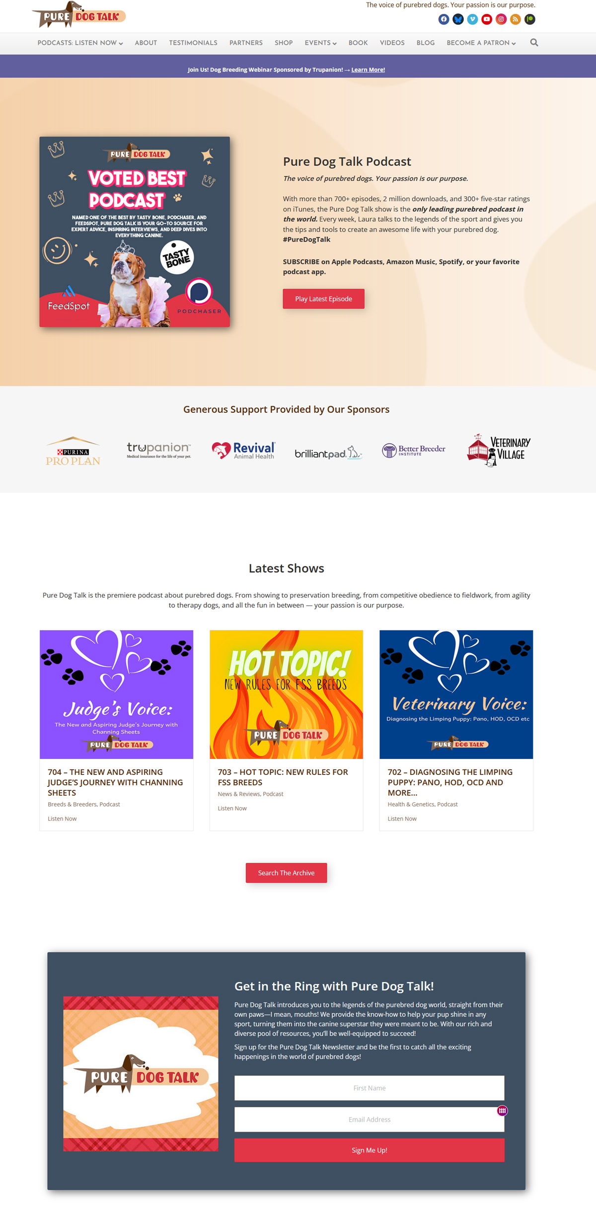 PODCAST Pure Dog Talk. I worked directly with the client for their Podcast Web Design project: Previous Post:Scotia Kennel Next Post:Temporary Residents Blog
